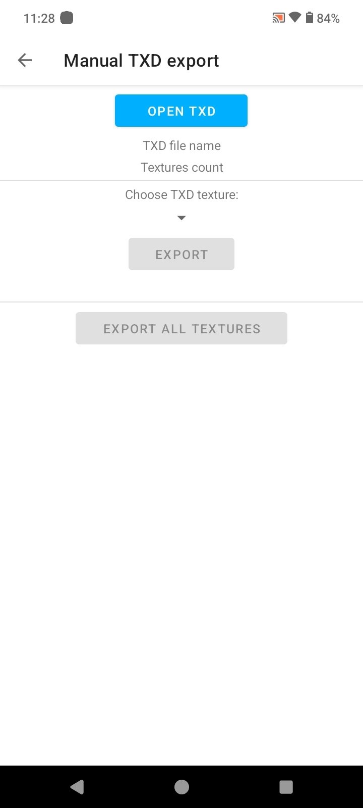 - Abertura e edição de arquivos TXD diretamente no dispositivo.